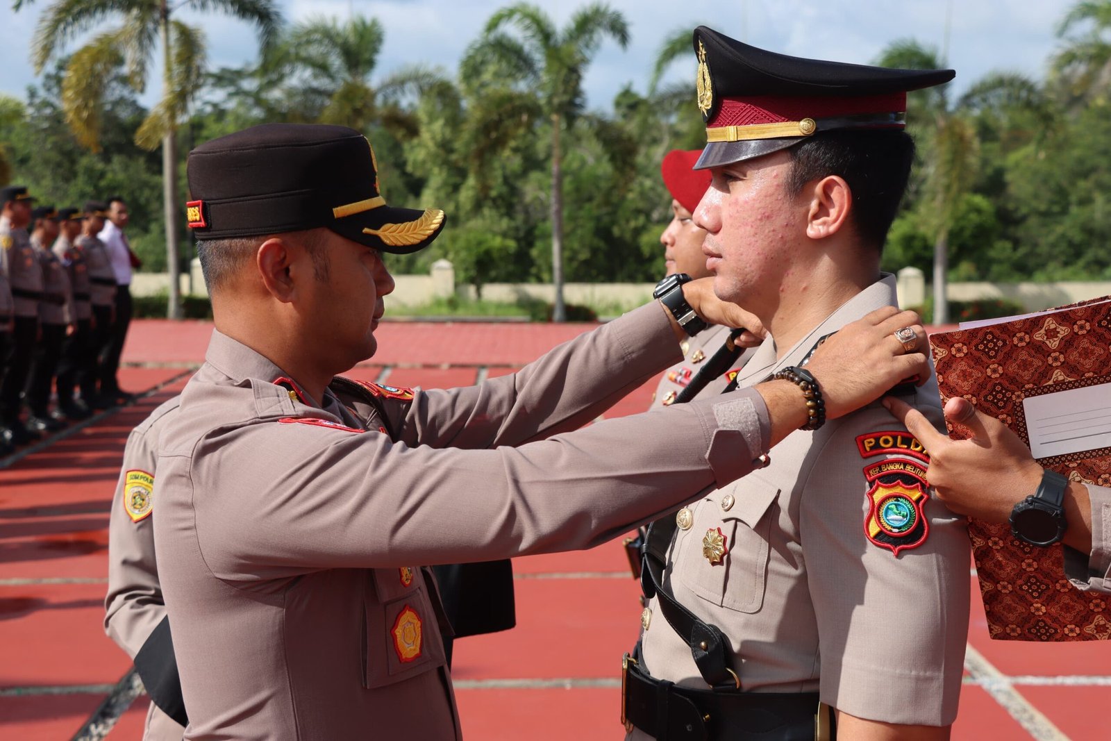 Dalam upacara tersebut, KOMPOL Fatah Meilana, S.I.K., M.H. yang sebelumnya menjabat sebagai Kapolsek Jebus, secara resmi dimutasikan dan mengemban jabatan baru sebagai Kanit 1 Subdit 3 Direktorat Reserse Kriminal Khusus Polda Bangka Belitung.