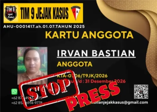 PANGKALPINANG – Tim 9 Jejak Kasus secara resmi mengumumkan pencabutan kartu tanda anggota (KTA) atas nama Irvan Bastian melalui pengumuman Stop Press yang disampaikan kepada publik.